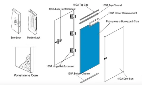 Hinge, closer, lock and strike plate reinforcements shall be provided.