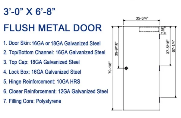3068 Flush Steel commercial door – 2″x 3″ rectangular tubing steel frame – dual prep