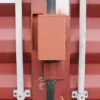 A roll-up door lock box on a shipping container is a secure enclosure made of heavy-duty steel that is mounted over the container’s roll-up door. It provides an additional layer of protection against unauthorized access and tampering. The lock box covers the container’s padlock, making it difficult for potential thieves to cut or break the lock. It enhances security by preventing direct access to the lock and offers peace of mind for the container owner or lessee, ensuring the stored goods or materials remain safe and secure during transportation or storage.